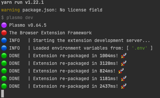 1 | yarn create plasmo |